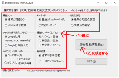 ファイル、再起動でDvorakJを再起動します。